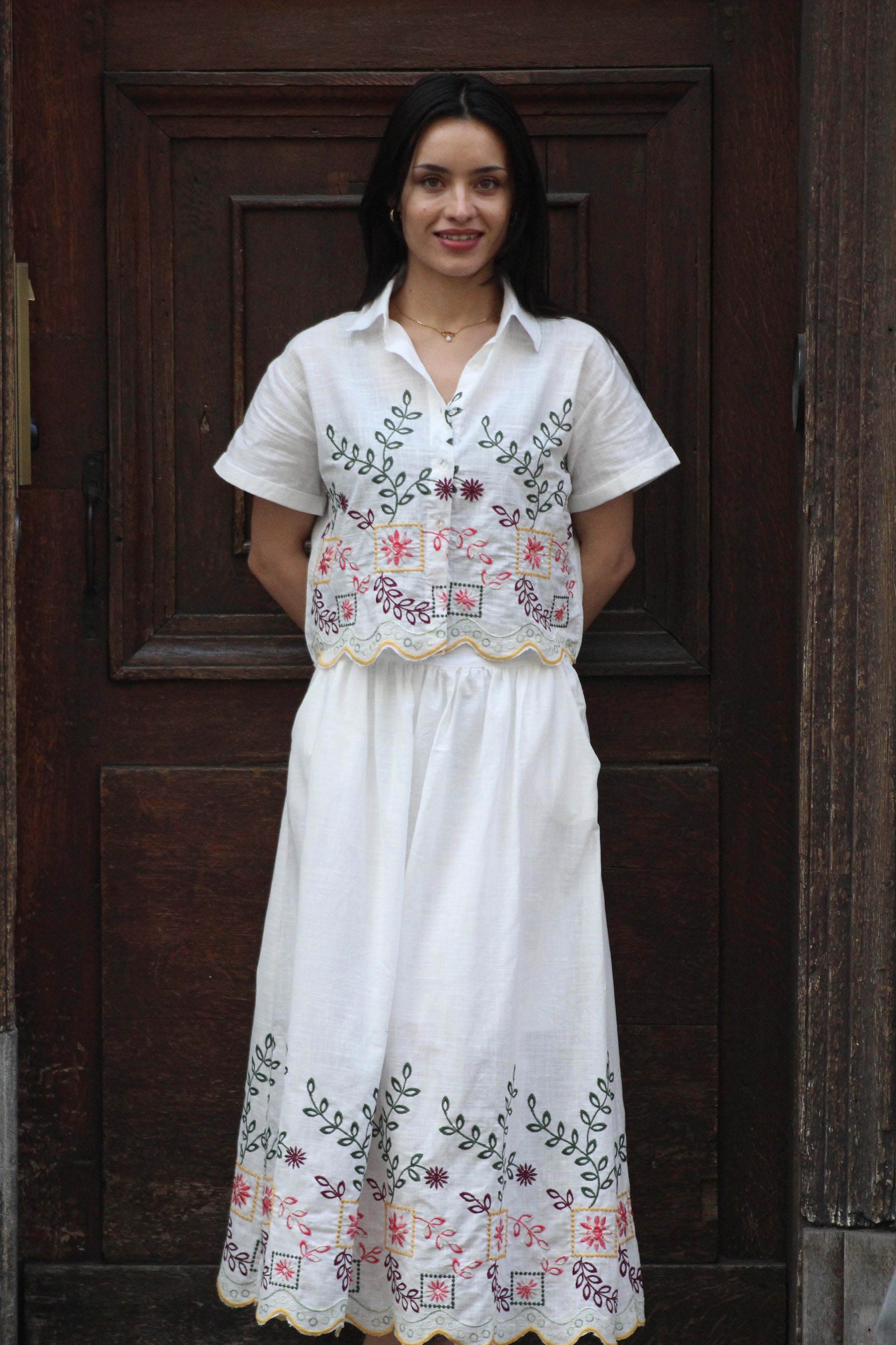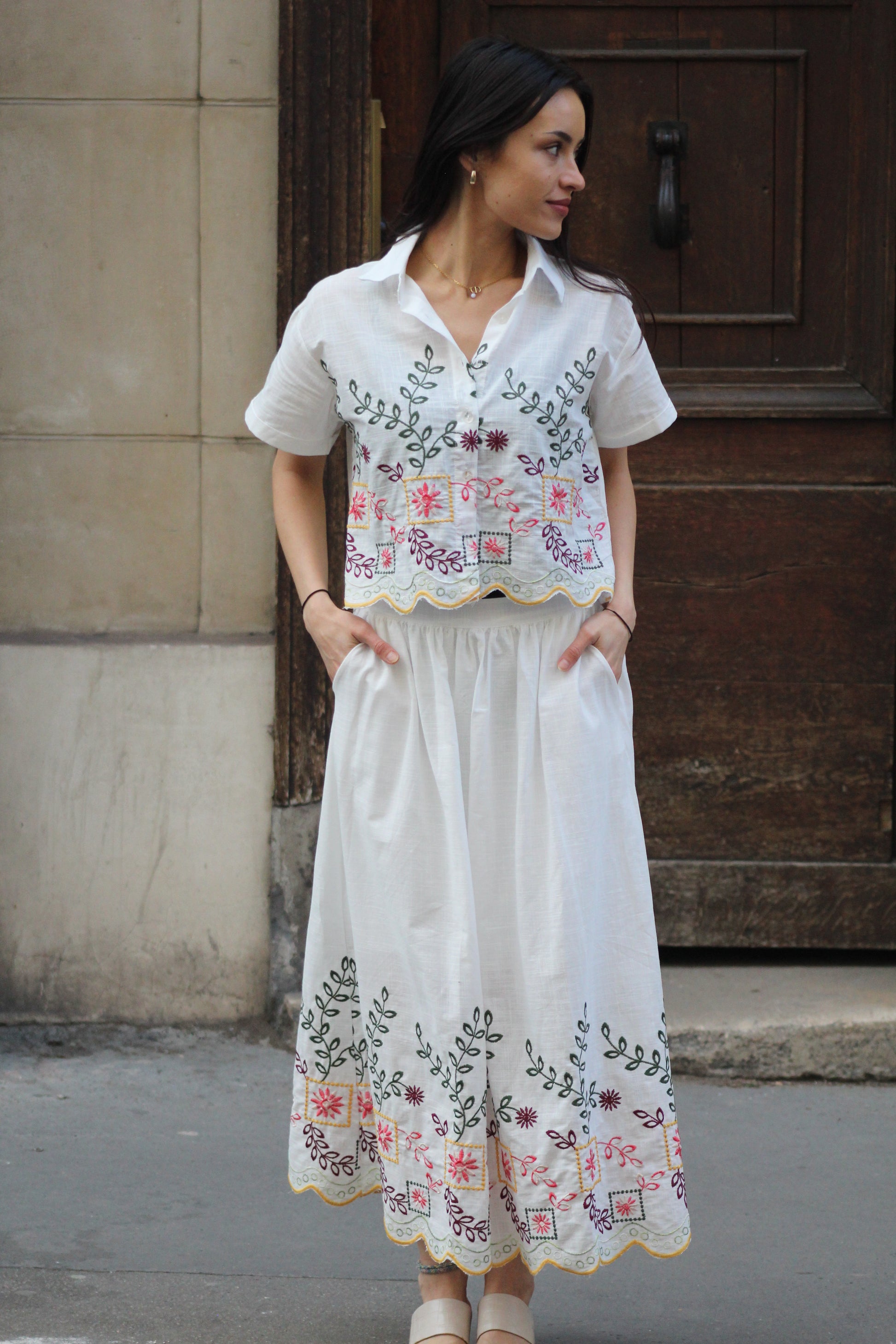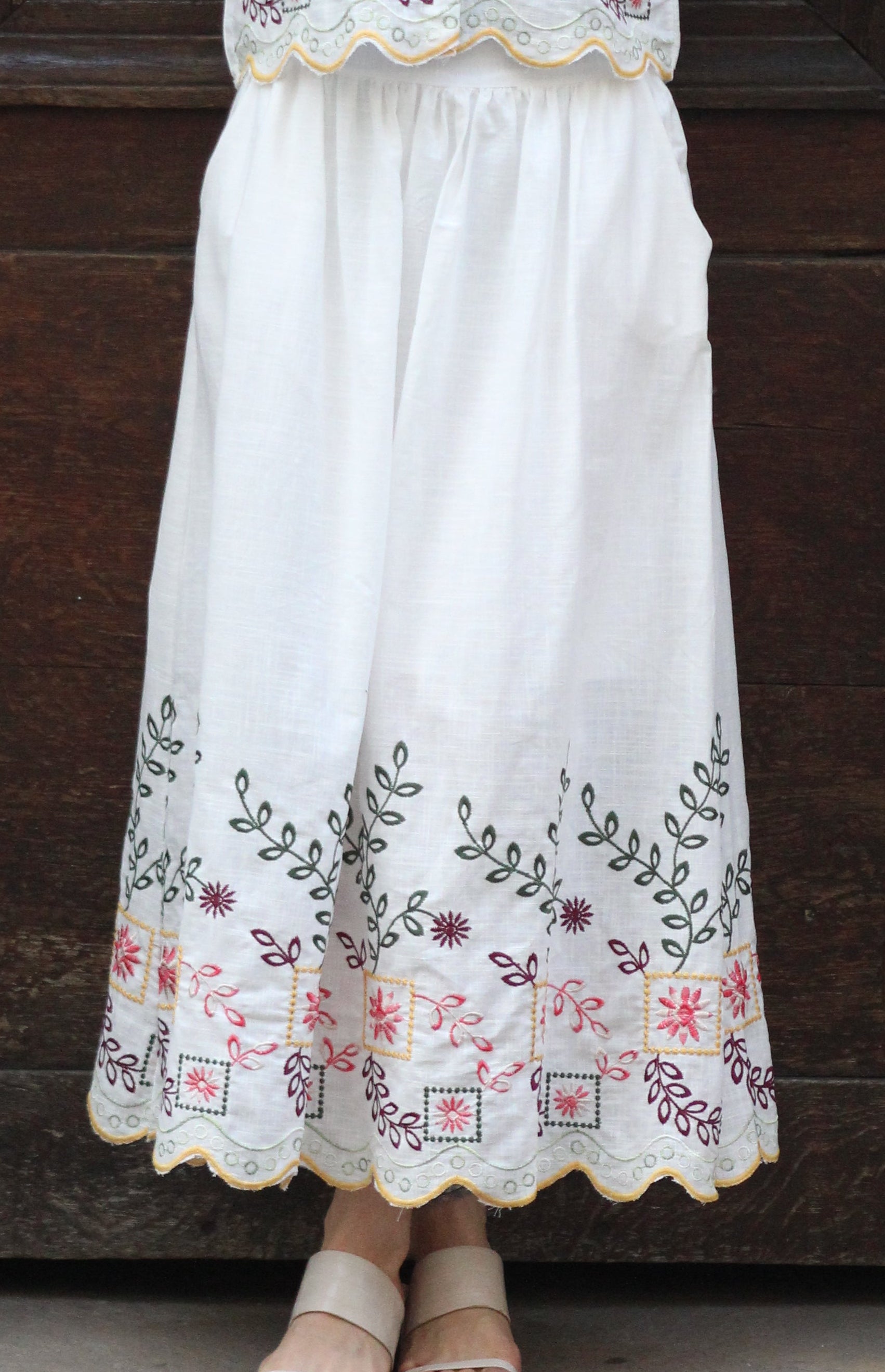Broderies florales en bas de jupe