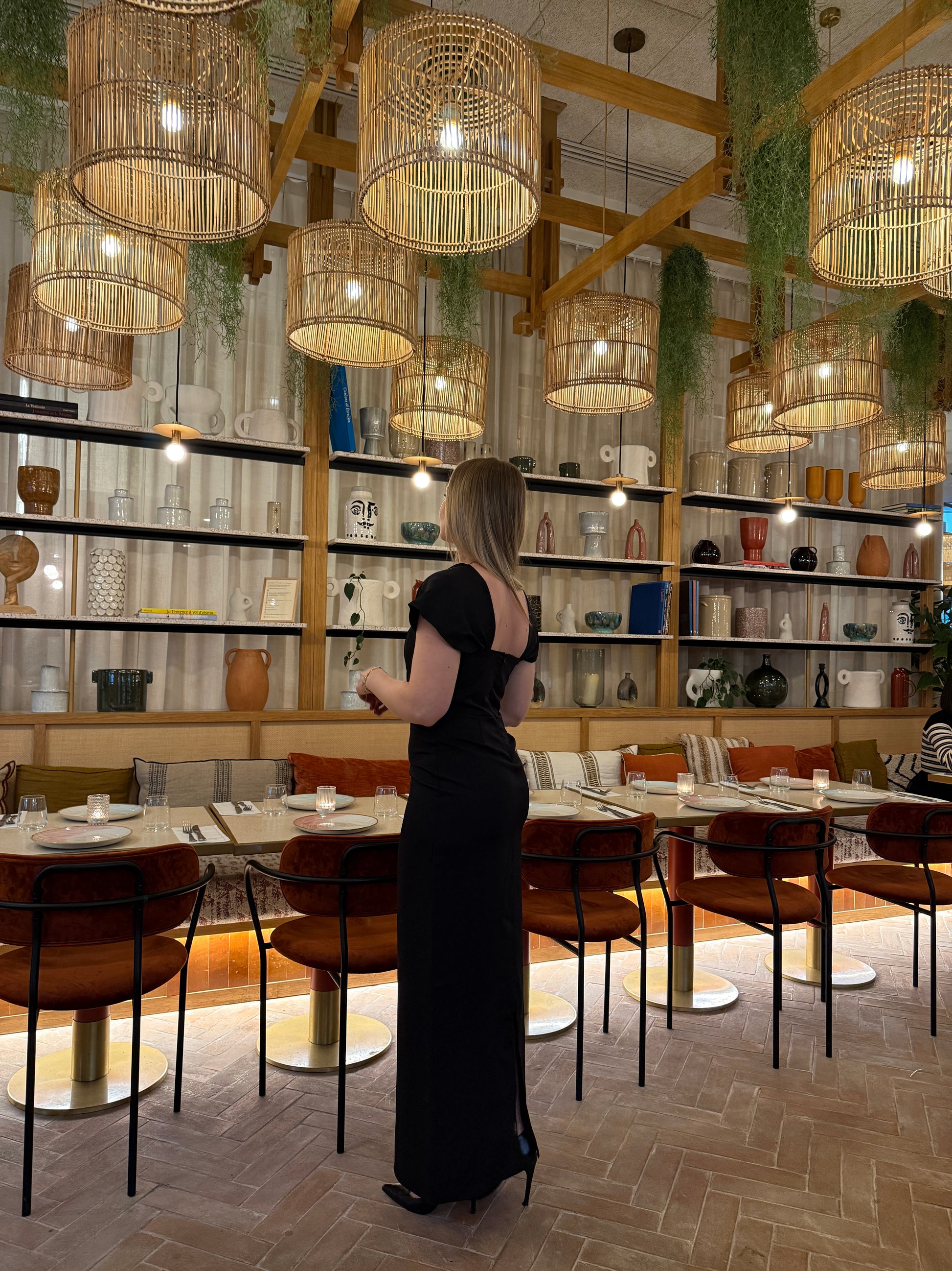 Avec sa coupe longue droite et son col carré délicatement orné de pierres scintillantes, cette robe sublime l’allure avec élégance. Ses manches papillon apportent une touche féminine et moderne, idéale pour vos soirées habillées, cocktails et cérémonies prestigieuses.
